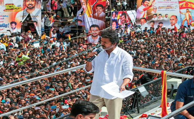 चेन्नई। तमिलनाडु के करूर जिले में एक्टर विजय की रैली में भगदड़ मचने से कई लोगों की मौत की आशंका है। तमिलगा वेट्री कषगम के नेता और एक्टर विजय ने इस रैली का आयोजन किया था। रैली के दौरान अचानक भगदड़ मच गई। हताहत होनेवालों महिलाओं और बच्चे भी शामिल हैं।