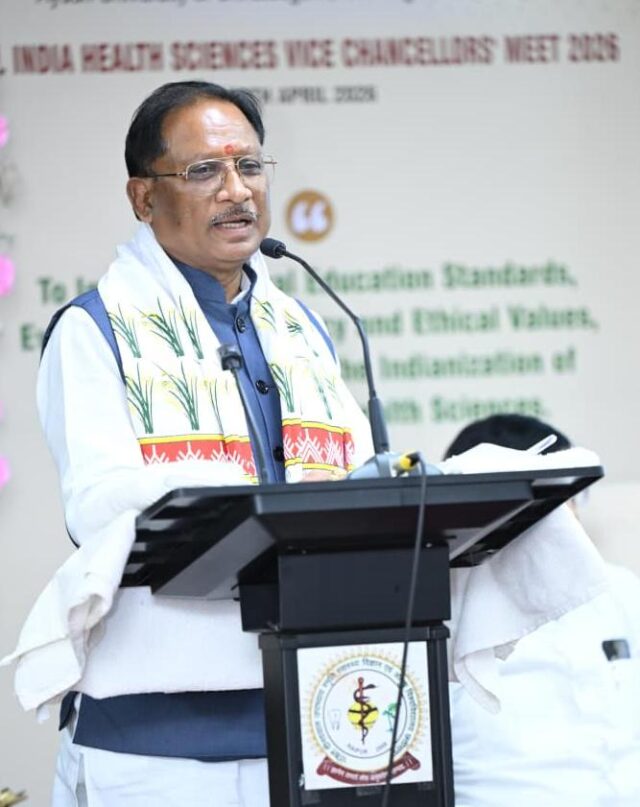 रायपुर: मुख्यमंत्री श्री विष्णु देव साय ने आज नवा रायपुर स्थित पंडित दीनदयाल उपाध्याय स्मृति स्वास्थ्य विज्ञान एवं आयुष विश्वविद्यालय में आयोजित ऑल इंडिया हेल्थ साइंसेज वाइस चांसलर मीट-2026 को संबोधित करते हुए इसे प्रदेश के लिए एक ऐतिहासिक और गौरवपूर्ण अवसर बताया। उन्होंने भगवान श्रीराम के ननिहाल छत्तीसगढ़ की पावन धरा पर देशभर से आए कुलपतियों, शिक्षाविदों और विद्यार्थियों का आत्मीय स्वागत किया।